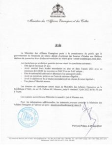 Bourse d’étude au Maroc pour les haïtiens